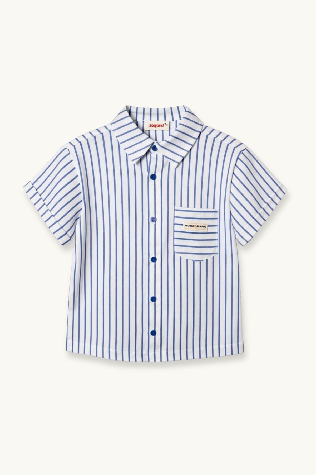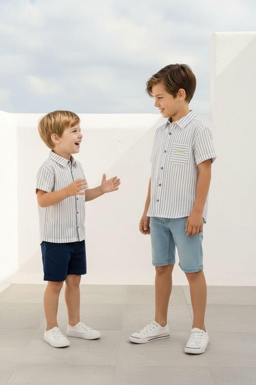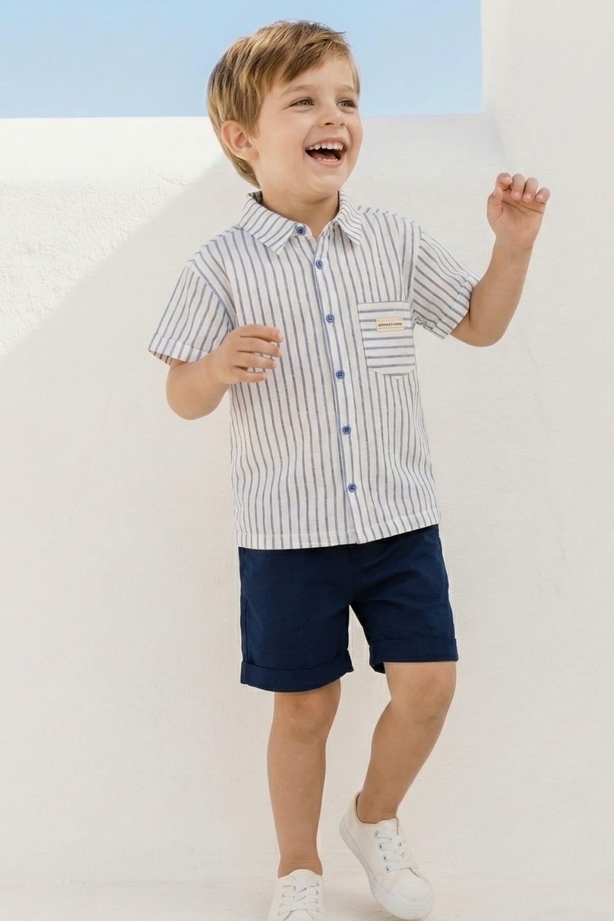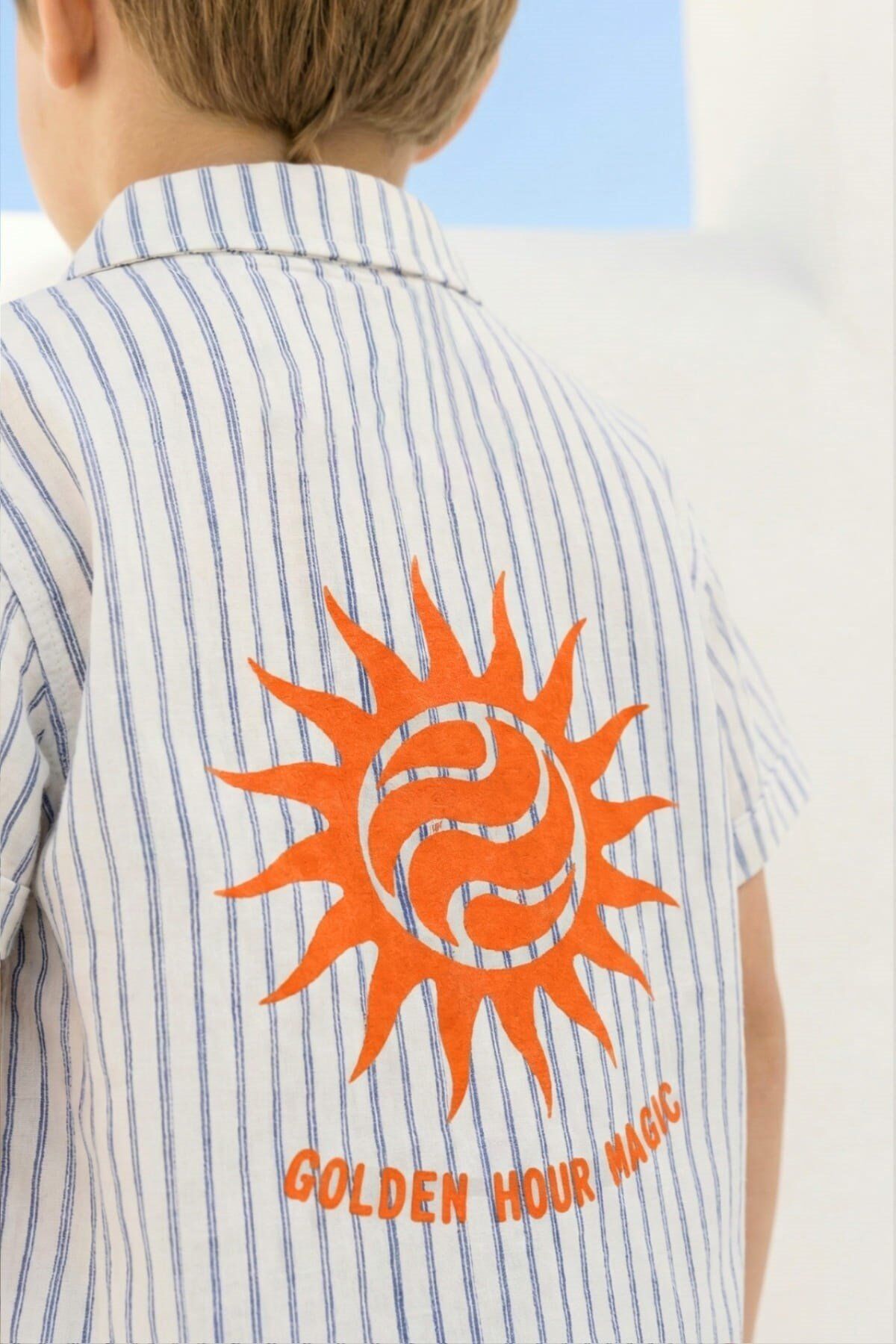 Erkek Çocuk Güneş Sırt Baskılı Mavi Çizgili Gömlek