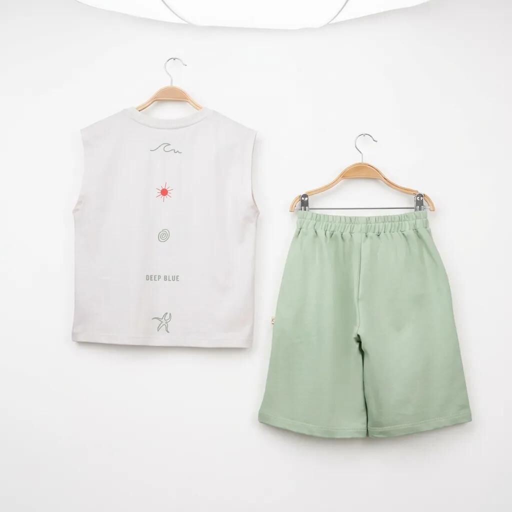 Erkek Çocuk Cepli Baskılı Atlet Diz Altı Şort Takım