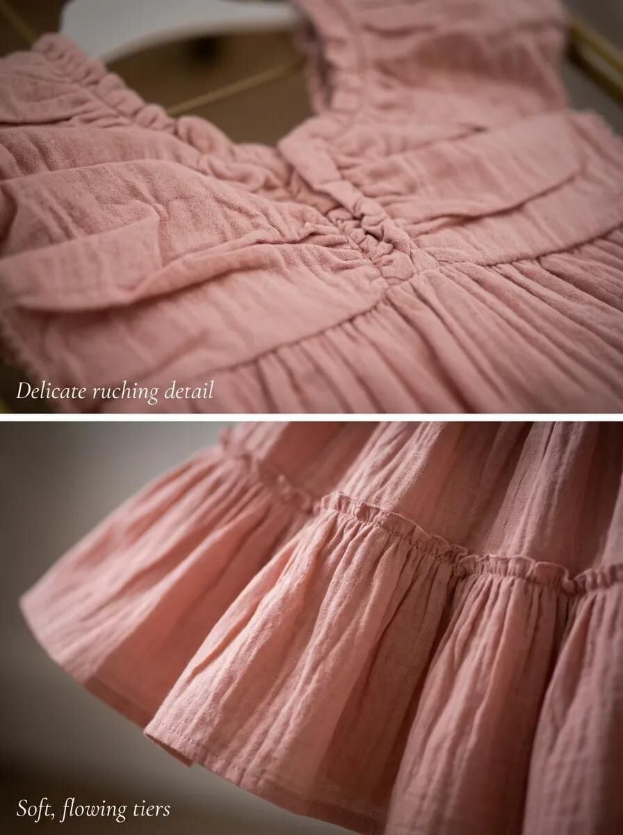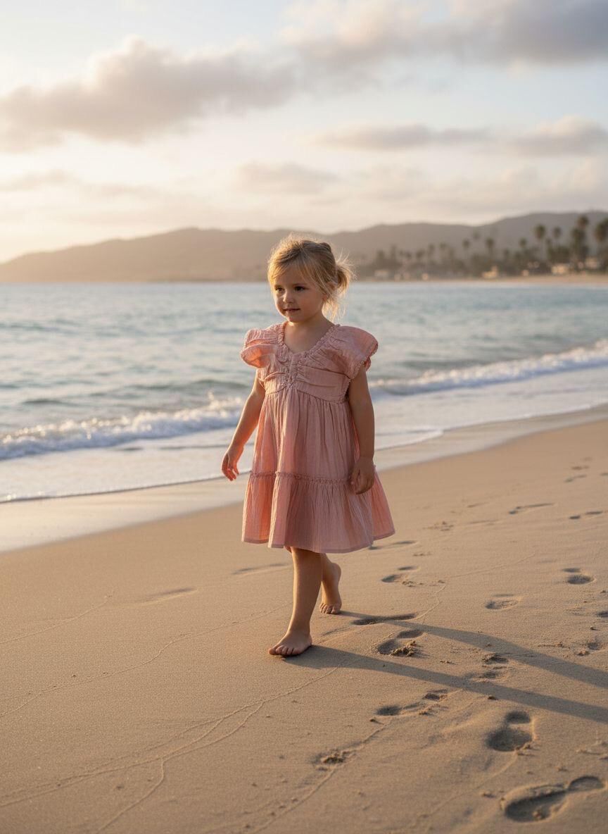 Kız Çocuk %100 Pamuklu Yazlık Elbise - Pudra - 2-5 Yaş