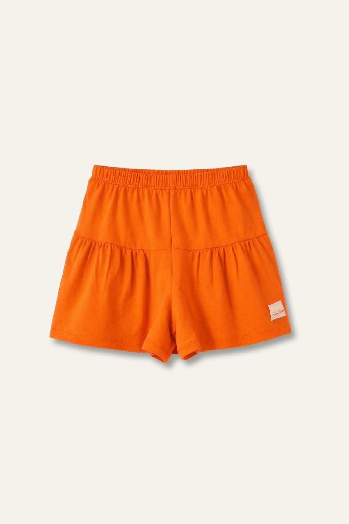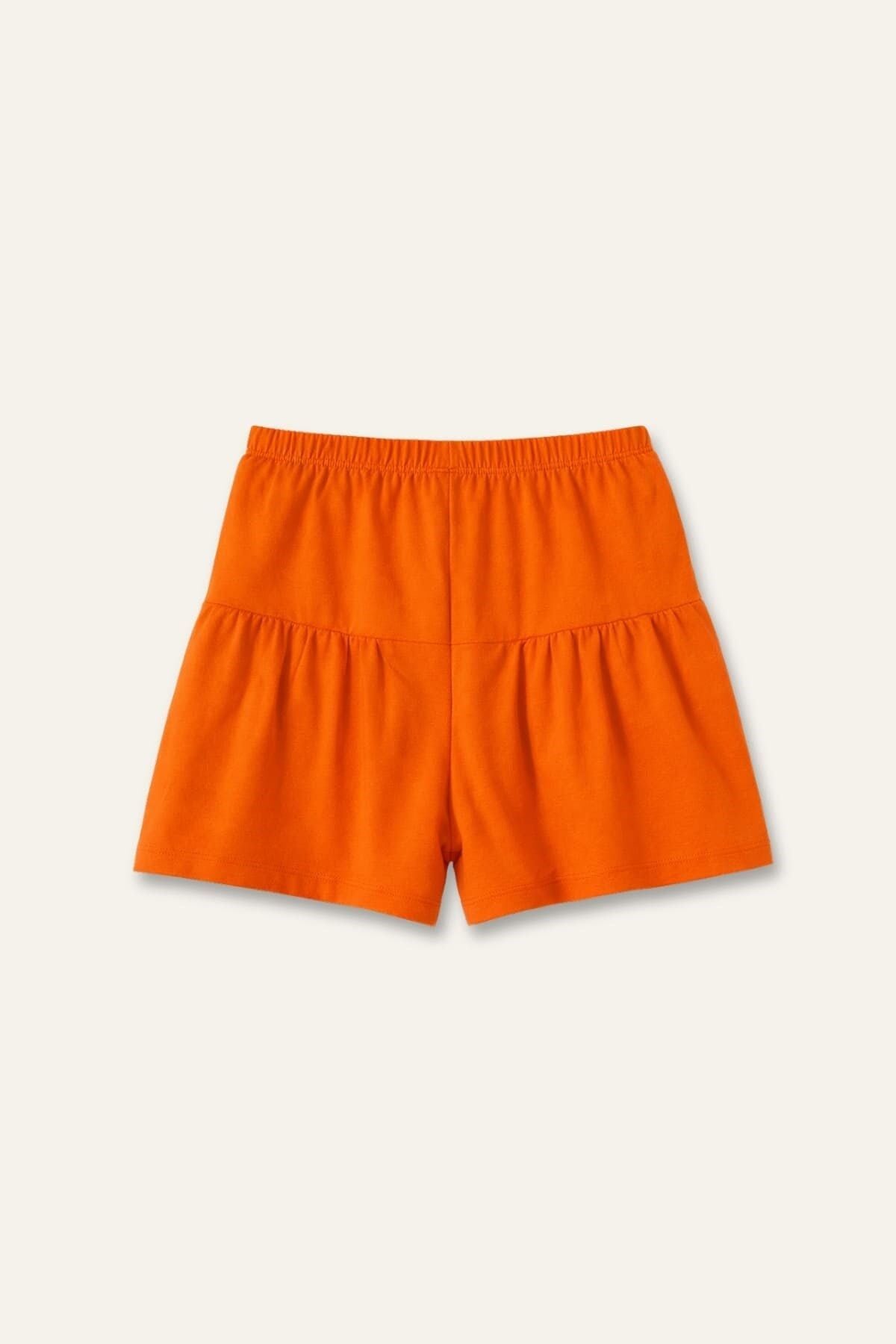 Kız Çocuk Fırfırlı Örme Şort - Turuncu
