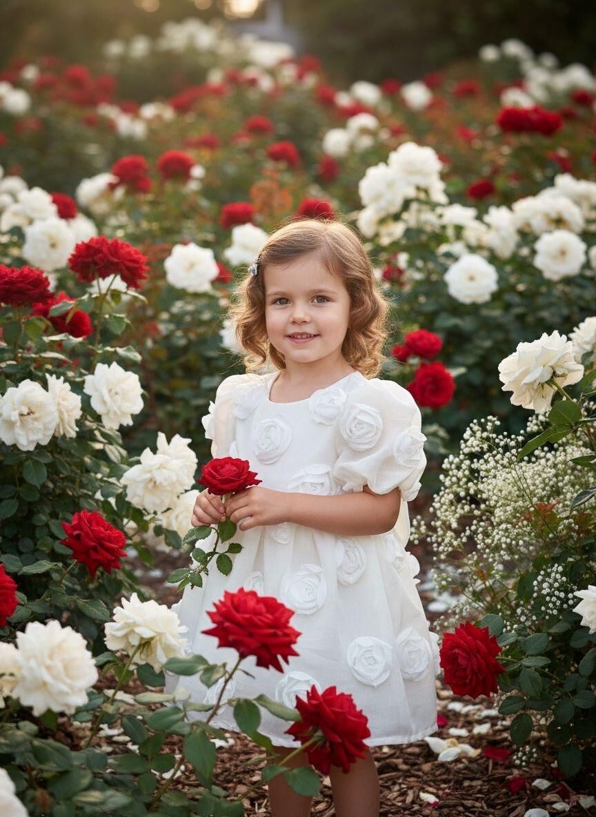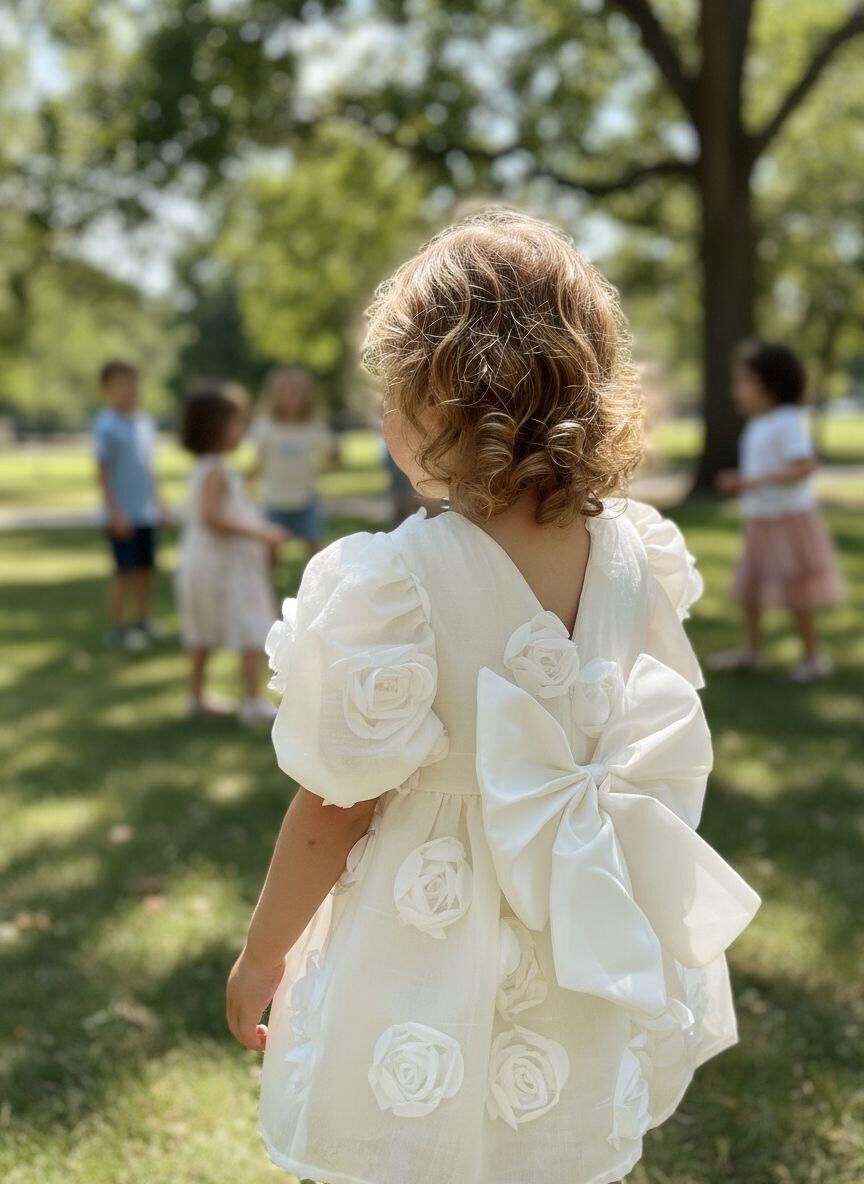 Pamuk astarlı tül kumaşıyla konforu sunan, zarif gül detaylarıyla süslenmiş bu özel gün çocuk elbisesi, küçük hanımların şıklığını tamamlar. Hafif ve nefes alabilir yapısı sayesinde hareket özgürlüğü sağlar, özel anları unutulmaz kılar.