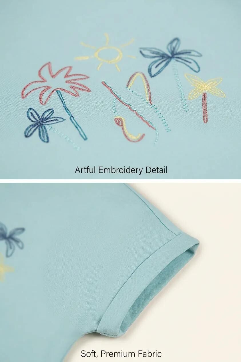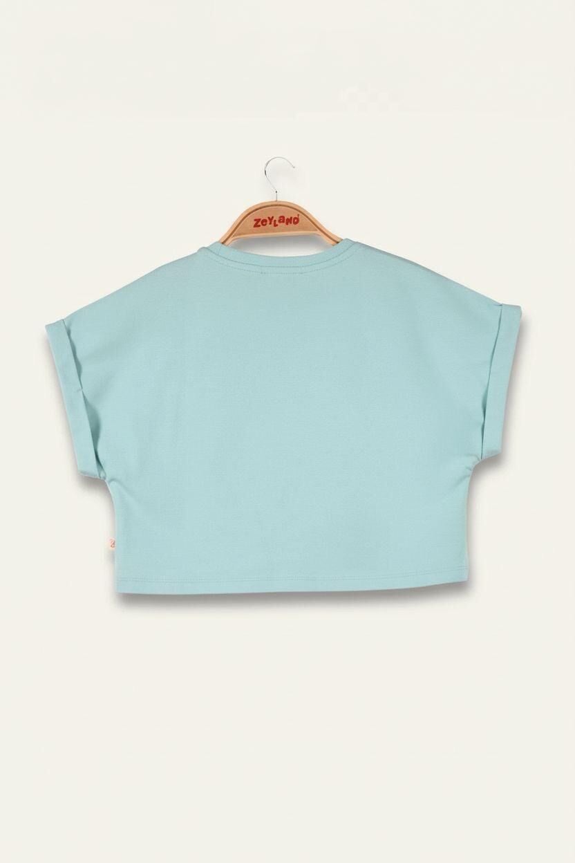 Kız Çocuk Nakış Detaylı Crop T-Shirt