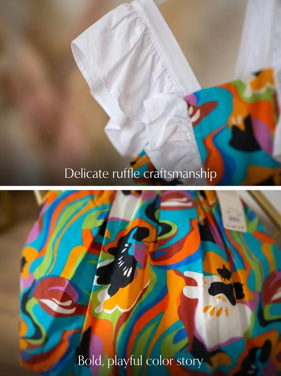Pamuklu astarıyla konforu ön planda tutan bu ürün, rengarenk tasarımıyla enerjinizi yükseltir. Dayanıklı malzemesi sayesinde uzun ömürlü kullanım sağlar. Hem şıklığı hem de rahatlığı bir arada sunan ideal seçenek, günlük hayatınıza neşe katmak için tasarlandı. Kız Çocuk Renkli Desenli Fırfırlı Askılı Yazlık Elbise - Çok Renkli - 2-5 Yaş