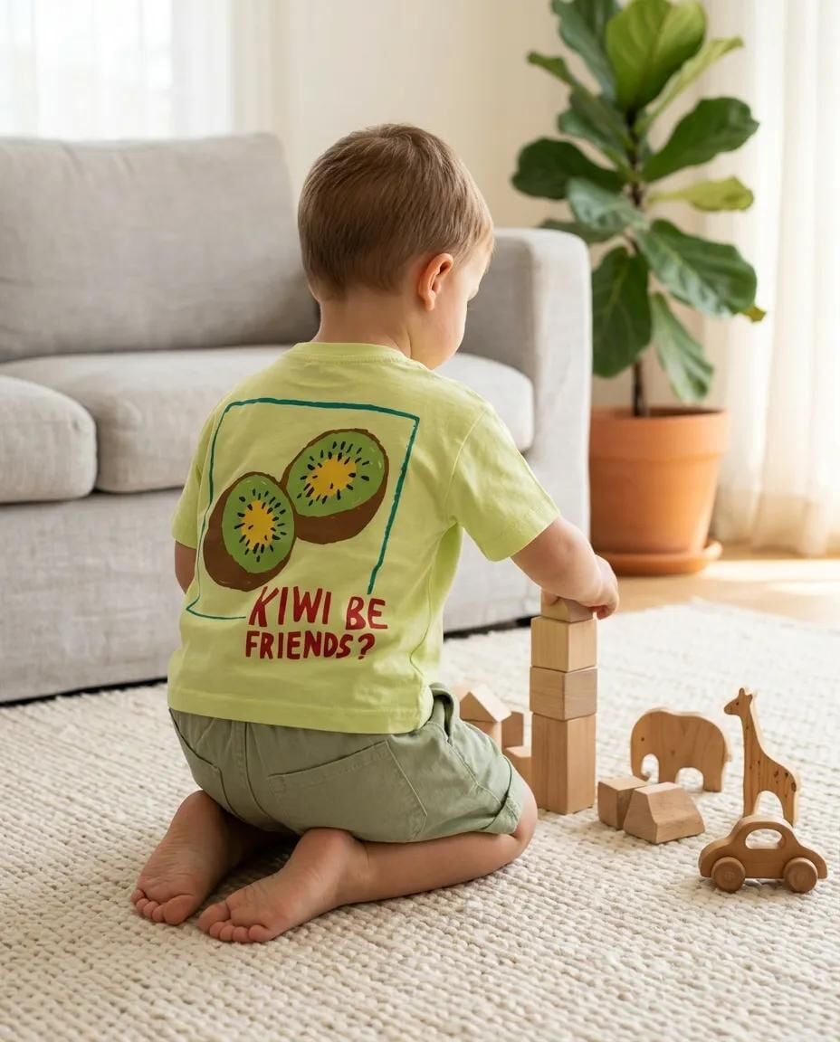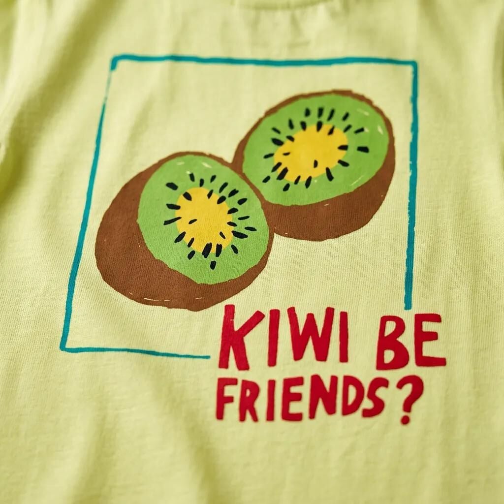 Unisex Erkek ve Kız Çocukları İçin Kiwi Baskılı Tişört ve Baloon Şort Takım Kiwi baskılı tişört ve baloon şort takımı, pamuklu rahat kesimi sayesinde çocukların gün boyu konforla hareket etmesini sağlar. Hem erkek hem kız çocuklarına uygun tasarlanan bu set, canlı renkleri ve modeliyle oyun saatlerini daha eğlenceli hale getirir.
